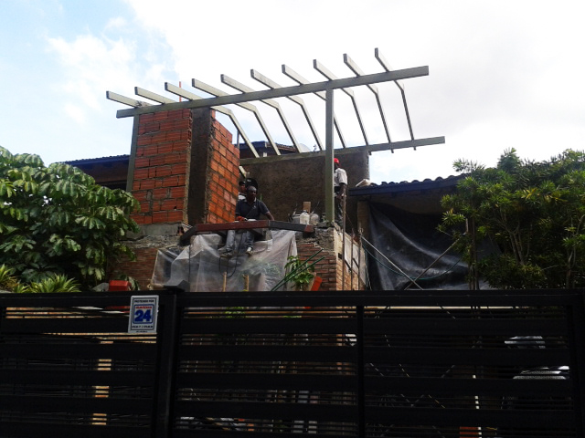 La estructura que techa esta nueva área, también da soporte a la escalera. Se realizó usando perfilería metálica tubular, anclada en la estructura original de hormigón a través de transiciones y anclajes mecánicos.