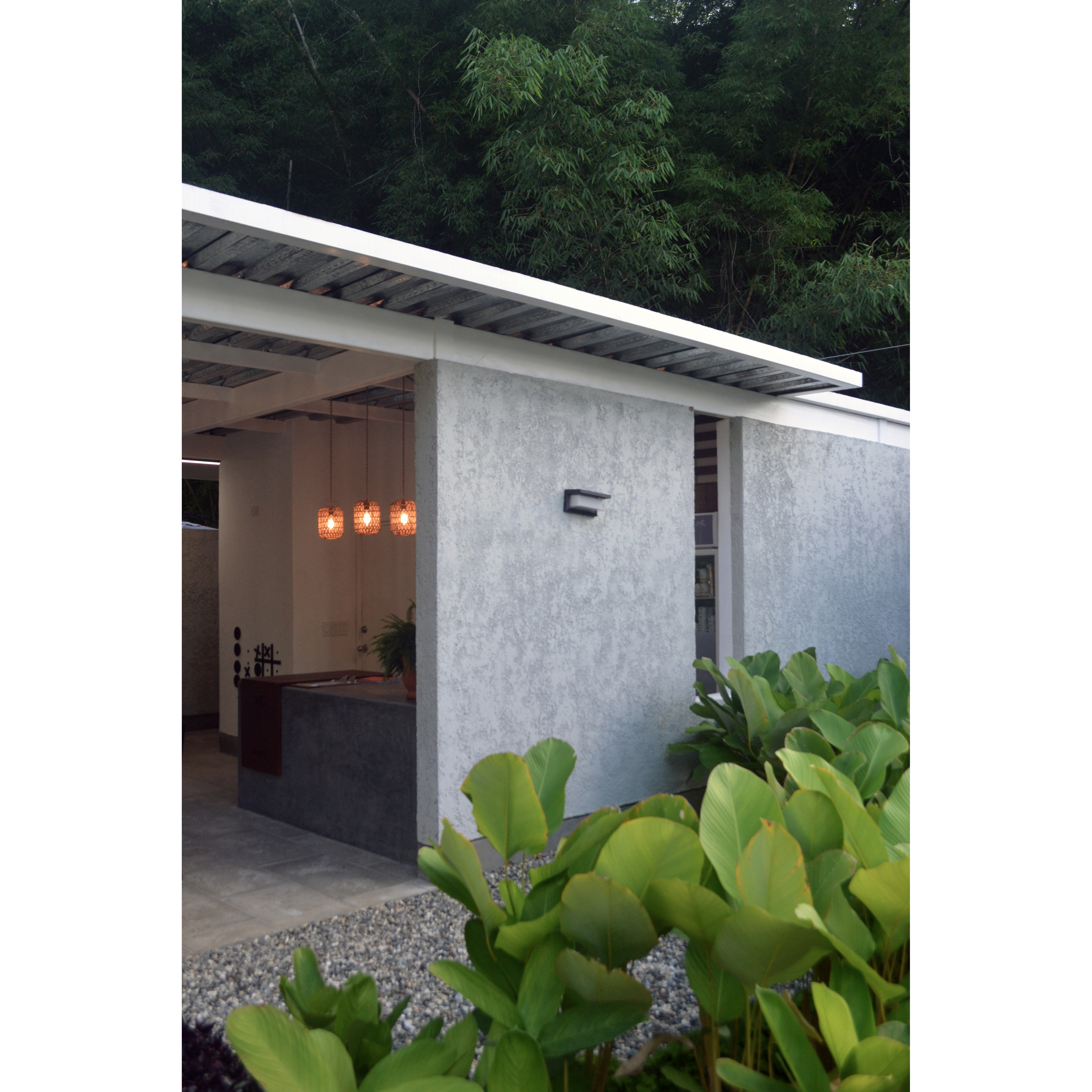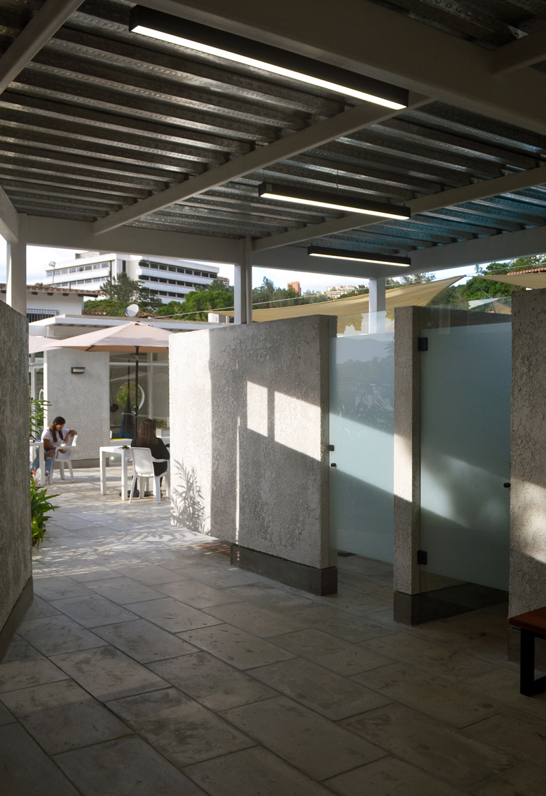 Las edificaciones son de una sola planta, de techos planos y de estructura y cubierta metálica en vista. Los cerramientos se establecen a partir de paredes de mampostería acabadas con frisos rústicos y cerramientos de vidrio con perfiles de aluminio. Los suelos se componen mediante tres grandes manchas definidas por losetas prefabricadas de concreto, decks de PVC y áreas verdes.